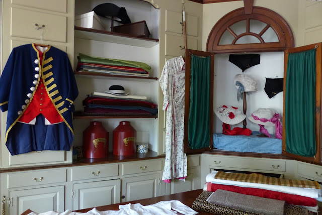 Évidemment, j'ai passé pas mal de temps à admirer, toucher, observer et poser des questions chez le tailleur, qui cousait aussi bien pour les hommes que pour les femmes. Toute fraîche de mon savoir en costumes paysans du18ème siècle grâce à ma lecture d'un énième tome de la série Outlander de Diana Gabaldon, j'ai pu admirer les "stays", ces corsets faits non pas pour restreindre mais pour soutenir. Et à ma grande surprise, j'ai appris qu'à Colonial Williamsburg, les "baleines" des corsets sont encore véritablement faites avec de véritables dents de baleines, certes obtenues plus éthiquement que leurs ancêtres.